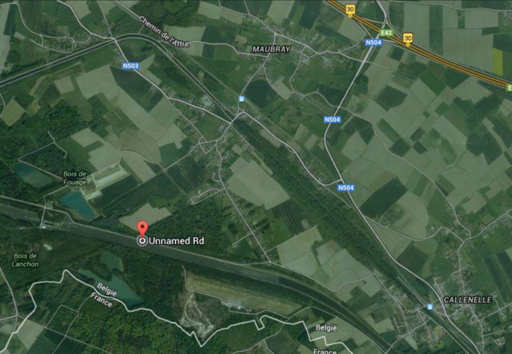 Prendre la nationale N504 (Chaussée de Grand Camp) en direction de Callenelle, Maubray. Après 1,3 km, prendre à droite la N503 (Grand Route) vers Antoing en passant au dessus du chemin de fer.